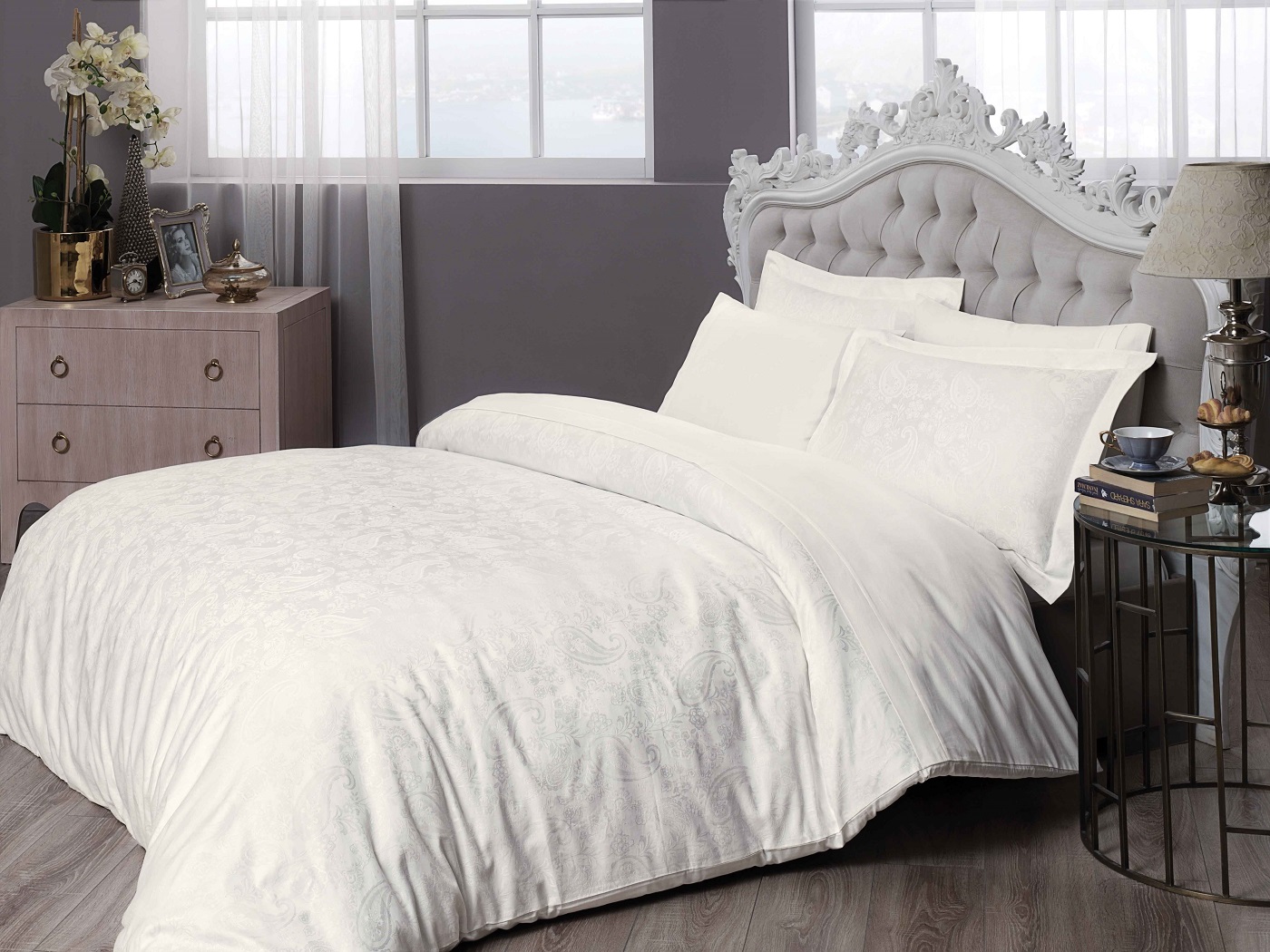 КПБ TAC JAKAR SATEN/евро/ BRINLEY, кремовый