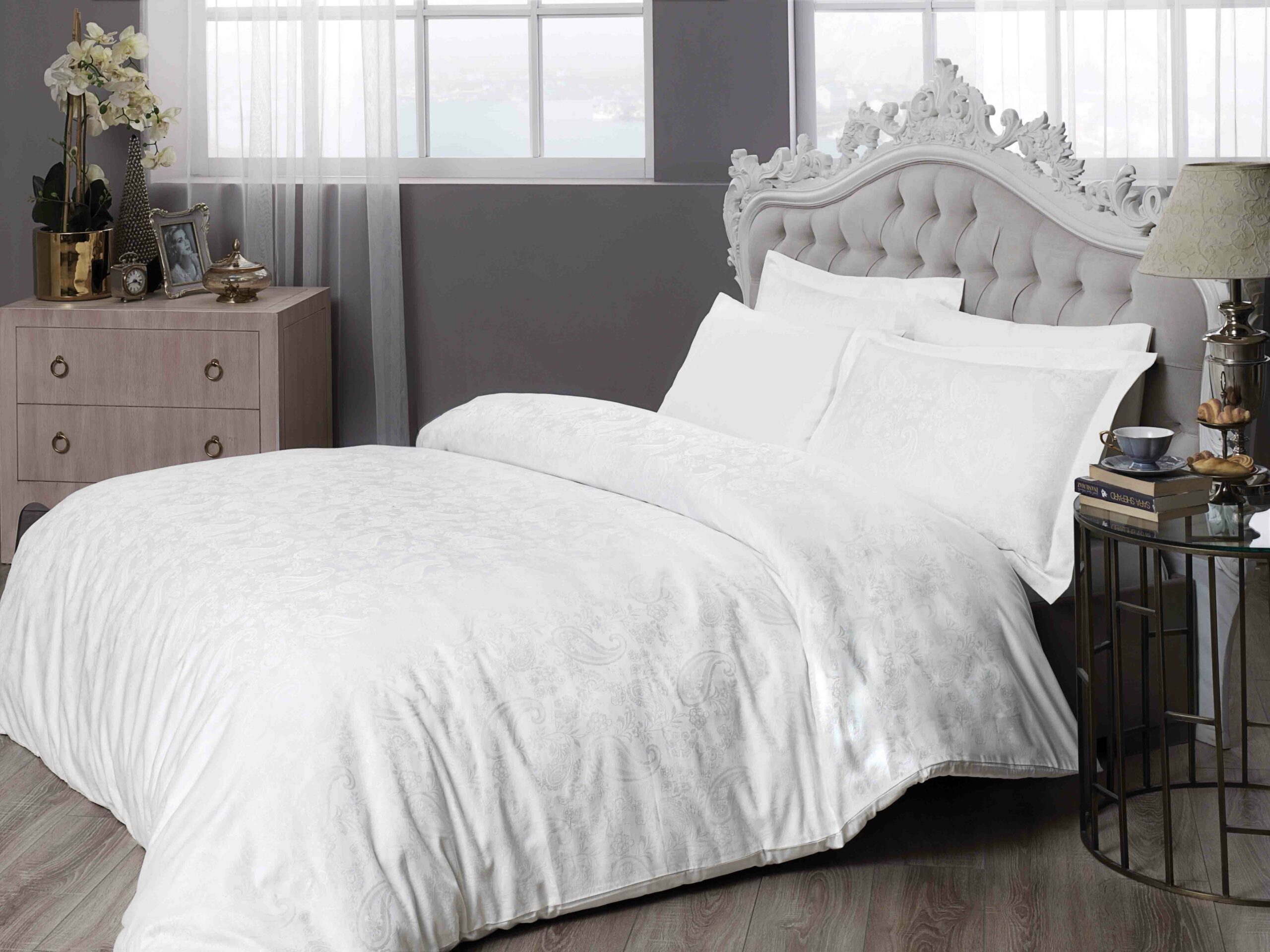 КПБ TAC SATEN BASIC/евро/ BEYAZ, белый